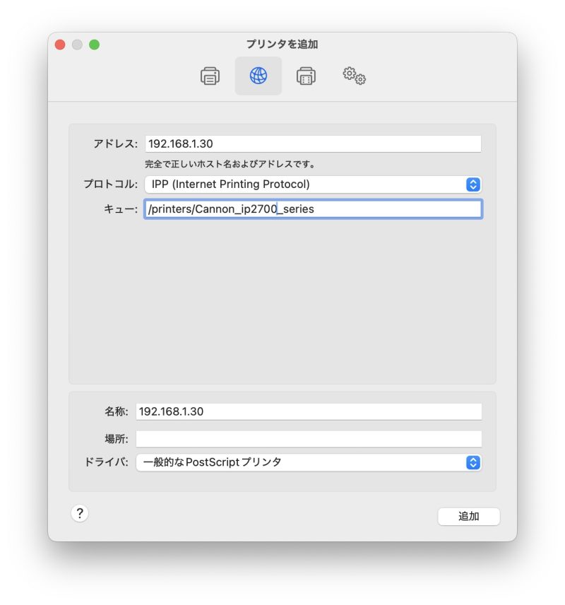 ならば、MacからIPPで接続する設定をします。